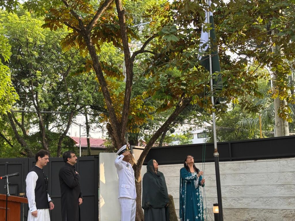 A flag-hoisting ceremony was held at Pakistan House, attended by a large number of Pakistanis along with their families.